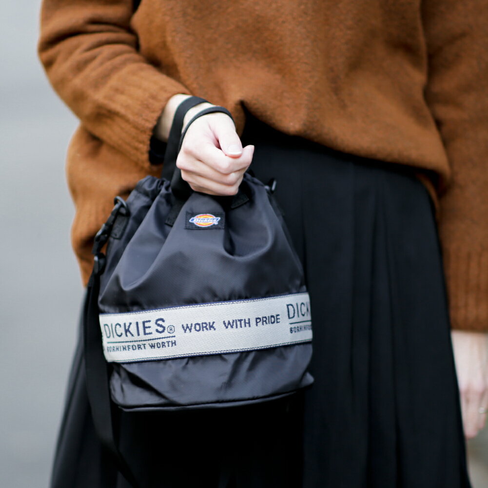 Dickies ディッキーズ ワイドロゴテープ 巾着 ショルダーバッグ dwearsステッカー入り メンズ レディース ショルダー 斜めがけ バッグ
